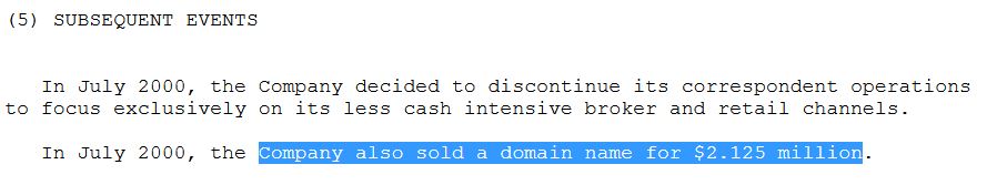 Dzięki nowym możliwościom EDGARa Kirikos odkrył, że w lipcu 2000 r. linie Delta Airlines zakupiły domenę Delta.com za 2,125 miliona USD. Informacja ta znajduje się na piątej stronie raportu finansowego firmy Delta Financial, poprzedniego właściciela adresu.